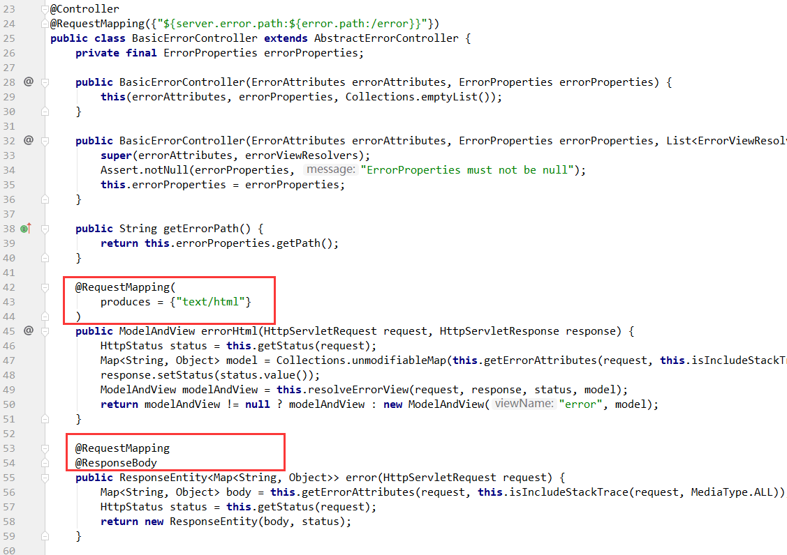 查看Spring Boot的BasicErrorController类便可看到这一默认机制的具体实现: