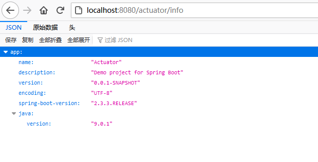 一旦你增加上面的properties,info endpoint将展示如下信息: