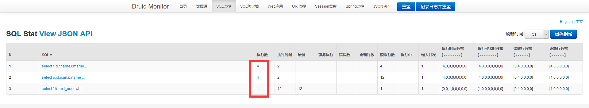 查看Druid数据源SQL监控: SQL只执行了一次,说明缓存成功。