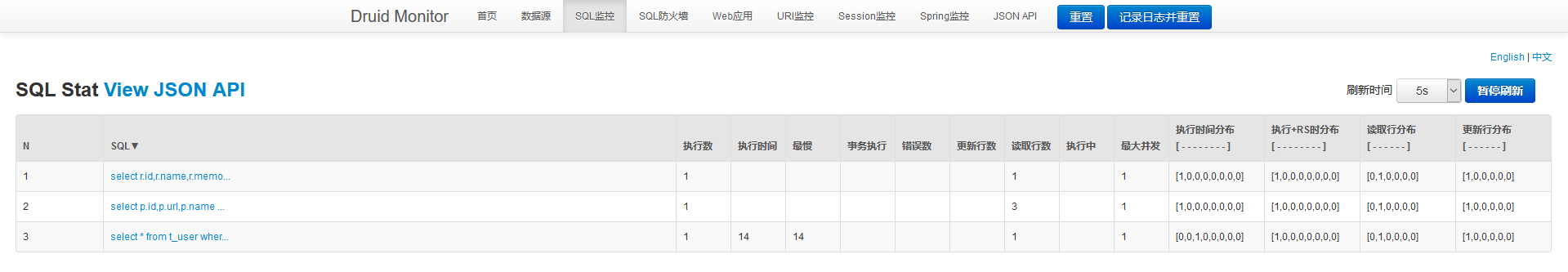 说明在这三次访问中,Shiro都会从数据库中获取用户的权限信息,通过Druid数据源SQL监控后台也可以证实这一点: 这对数据库来说是没必要的消耗。接下来使用缓存来解决这个问题。