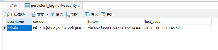 这个其实就是用于保存token对象数据表的SQL语句,我们复制出来手动执行创建表,如果jdbcTokenRepository.setCreateTableOnStartup(true);启动时候,会自动创建表。