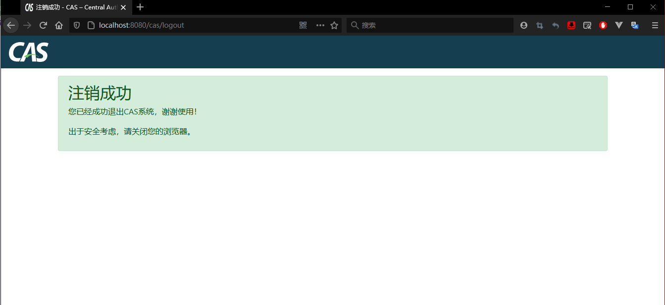 在浏览器输入 http://localhost:8080/cas/logout 即可退出服务,如下图: