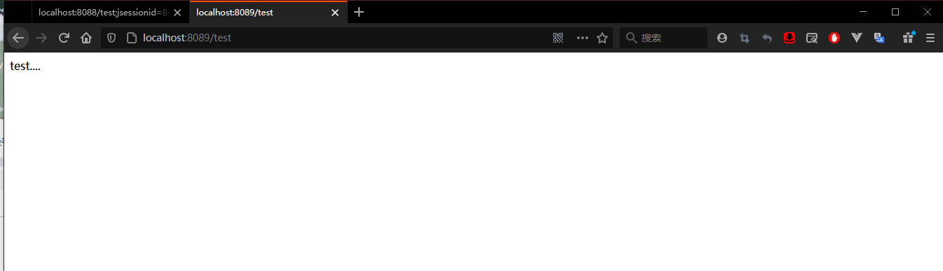 我们再次在浏览器窗口重新输入客户端1, http://localhost:8089/test ,或者在刚刚输入客户端页面重新刷新