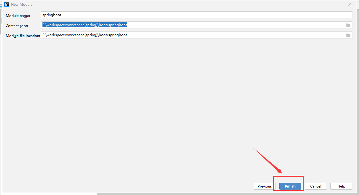 4> 输入模块名字和选择对应的路径,然后点击finish