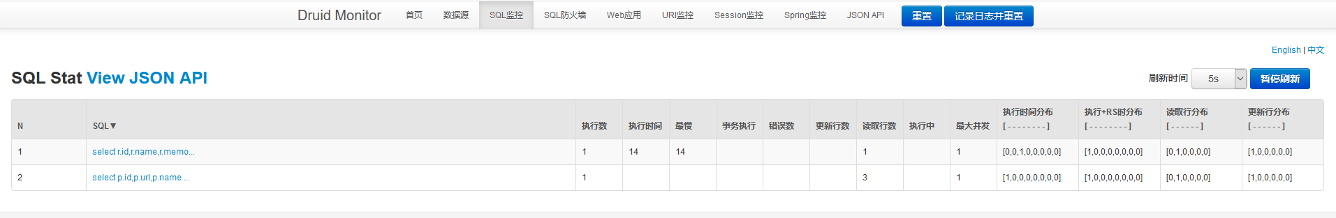 说明在这三次访问中,Shiro都会从数据库中获取用户的权限信息,通过Druid数据源SQL监控后台也可以证实这一点: 这对数据库来说是没必要的消耗。接下来使用缓存来解决这个问题。