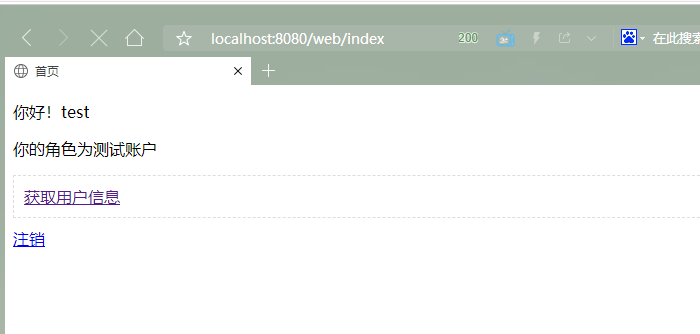 | <!DOCTYPE html> <html xmlns:th="http://www.thymeleaf.org" xmlns:shiro="http://www.pollix.at/thymeleaf/shiro" > <head> <meta charset="UTF-8"> <title>首页</title> </head> <style> div { border: 1px dashed #ddd; padding: 10px; margin: 10px 10px 10px 0px; } </style> <body> <p>你好![[${user.userName}]]</p> <p shiro:hasRole="admin">你的角色为超级管理员</p> <p shiro:hasRole="test">你的角色为测试账户</p> <div> <a shiro:hasPermission="user:user" th:href="@{/user/list}">获取用户信息</a> <a shiro:hasPermission="user:add" th:href="@{/user/add}">新增用户</a> <a shiro:hasPermission="user:delete" th:href="@{/user/delete}">删除用户</a> </div> <a shiro:hasRole="admin" th:href="@{/online/index}">在线用户管理</a> <a th:href="@{/logout}">注销</a> </body> </html>