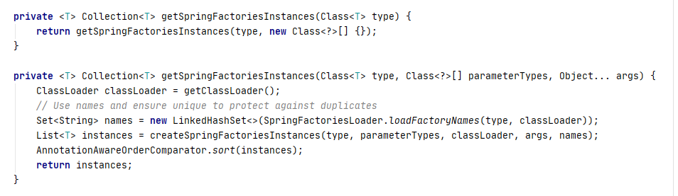 上面代码利用Spring工厂加载机制,实例化ApplicationContextInitializer实现类,并进行排序。