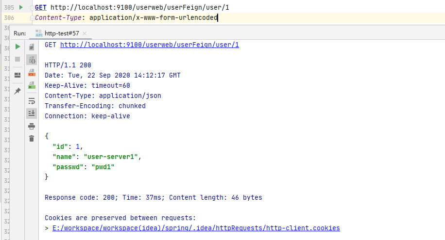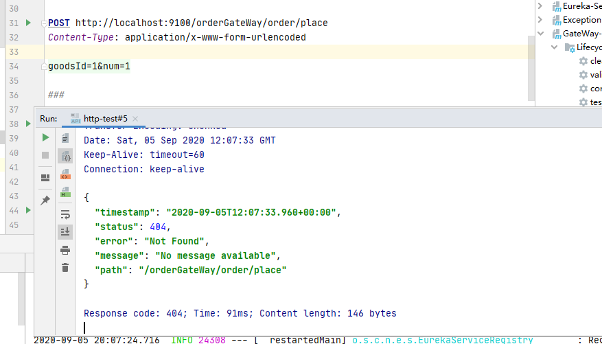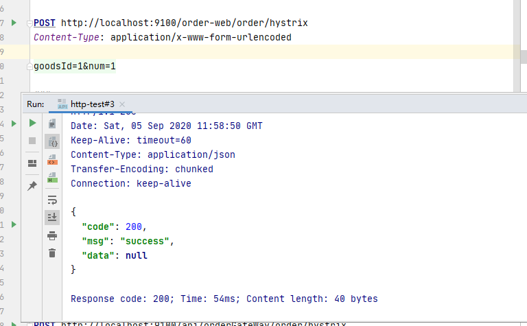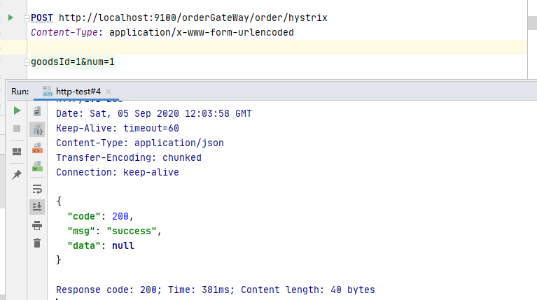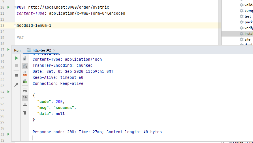 启动上边的所有项目,使用idea的http工具请求订单下单接口
