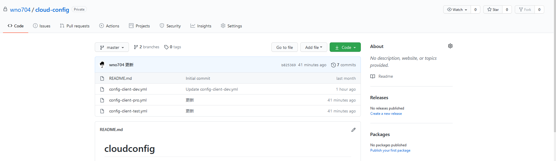 在 GitHub 上新建一个私有仓库,名为 cloud-config。