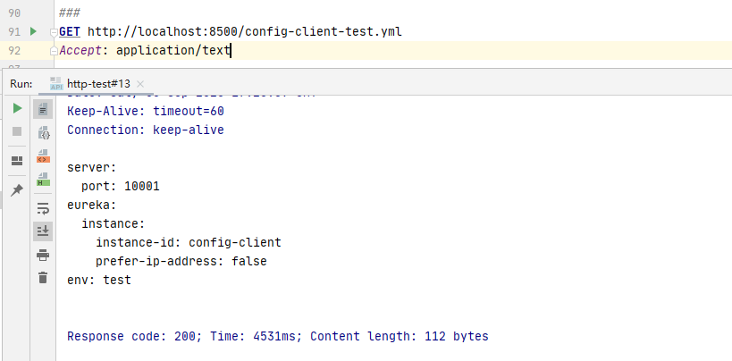 启动成功后,我们在idea的http工具中访问 http://localhost:8500/config-client-test.yml