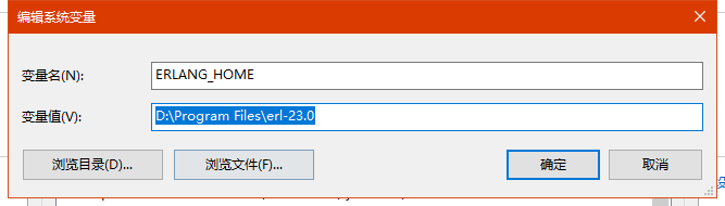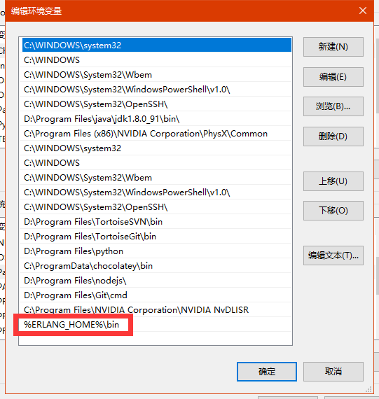 修改环境变量path,增加Erlang变量至path,%ERLANG_HOME%\bin;