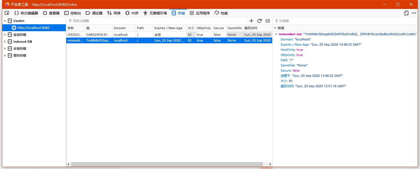 比较难看,无伤大雅。勾选并成功登录后,可以看到网页多了个remember-me的cookie对象: