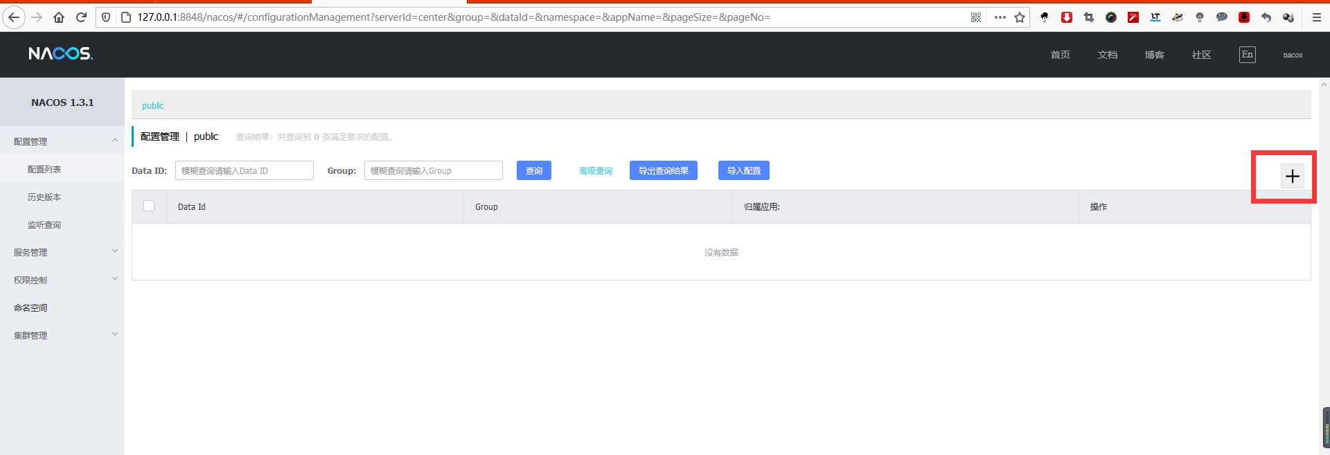 我们回到Nacos控制台 http://localhost:8848/nacos , 在配置列表中新建一个配置: