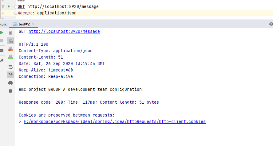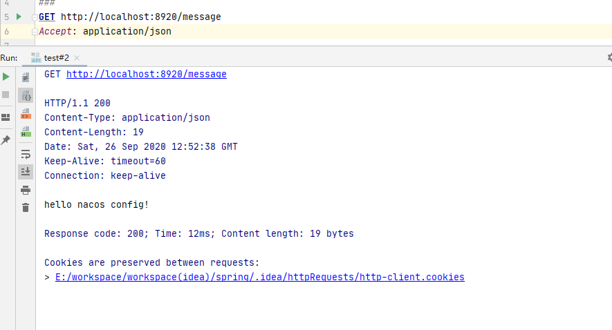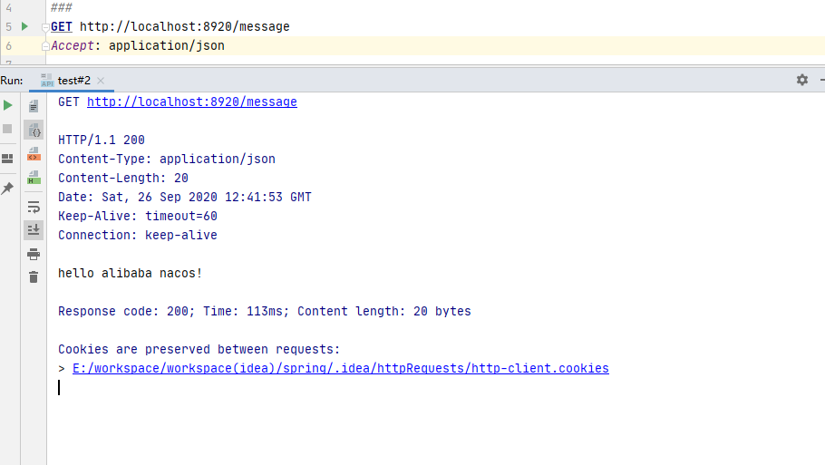 启动项目,在http工具中访问: http://localhost:8920/message :