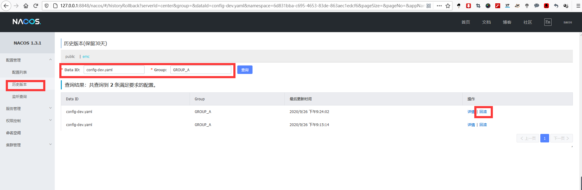六、配置回滚
