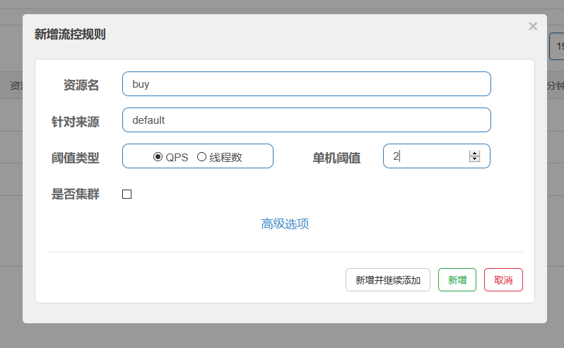 @GetMapping("buy/{name}/{count}") @SentinelResource(value = "buy", fallback = "buyFallback", fallbackClass = BuyFallBack.class, blockHandler = "buyBlock", blockHandlerClass = BuyBlockHandler.class ) public String buy(@PathVariable String name, @PathVariable Integer count) { if (count >= 20) { throw new IllegalArgumentException("购买数量过多"); } if ("wno704".equalsIgnoreCase(name)) { throw new NullPointerException("已售罄"); } Map<String, Object> params = new HashMap<>(2); params.put("name", name); params.put("count", count);