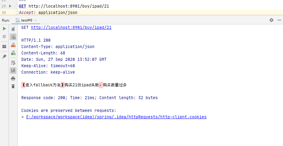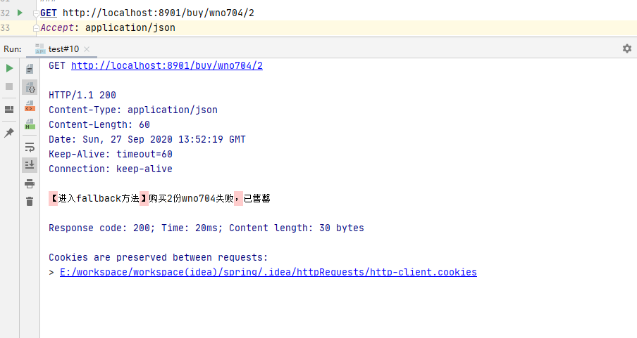 // 异常回退 public static String buyFallback(@PathVariable String name, @PathVariable Integer count, Throwable throwable) { return String.format("【进入fallback方法】购买%d份%s失败,%s", count, name, throwable.getMessage()); }