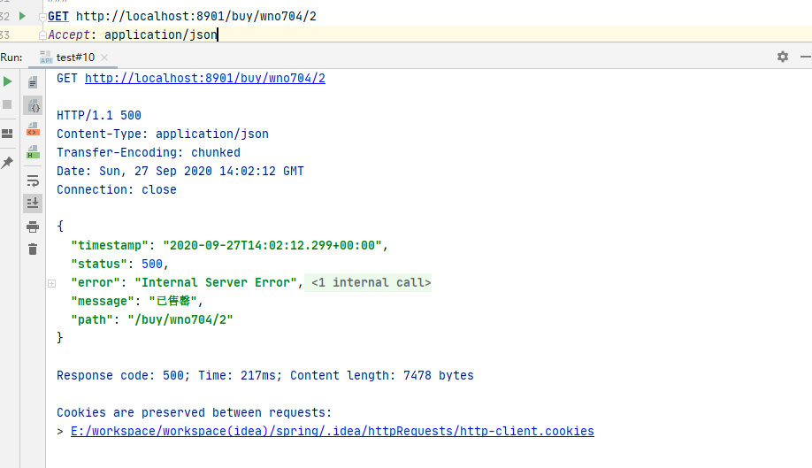 重启consumer,http访问: http://localhost:8901/buy/wno704/2 :
