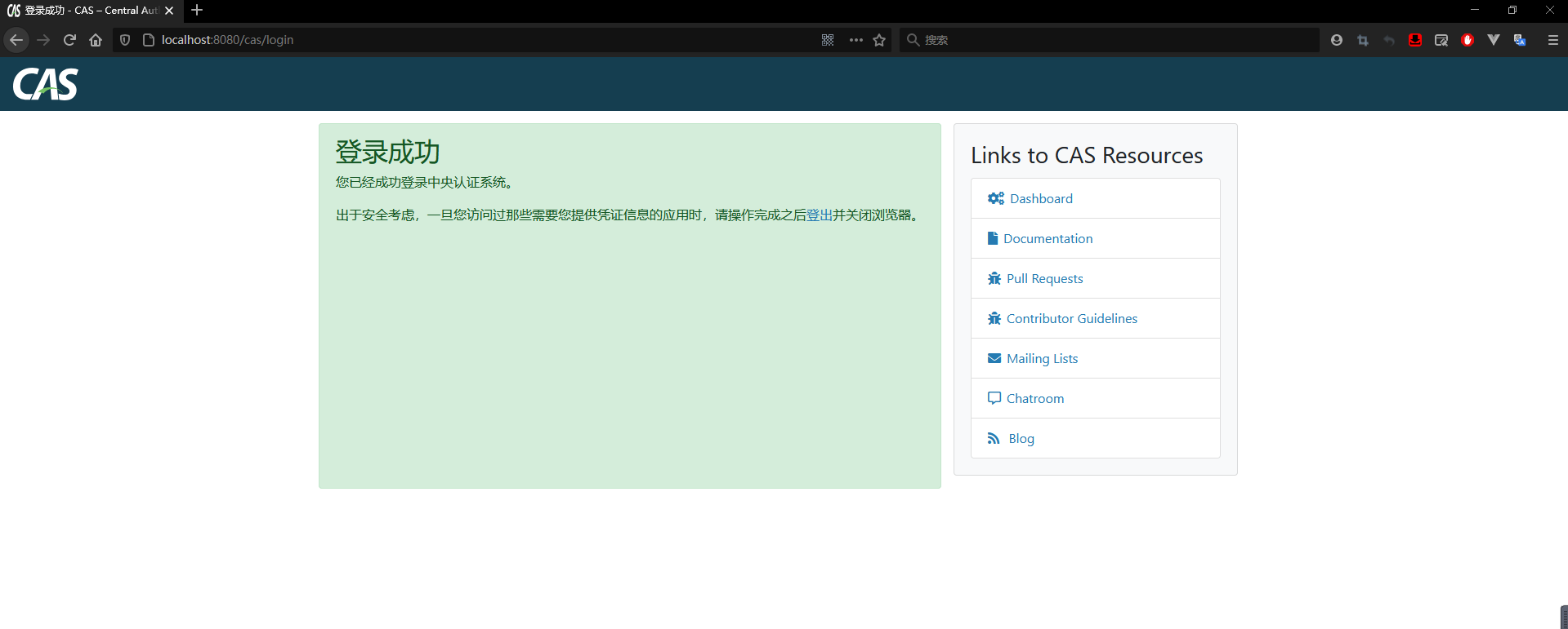 CAS服务器搭建完毕,重启tomcat 进行测试,在浏览器中输入 http://localhost:8080/cas/login 或者 http://localhost:8080/cas ,
