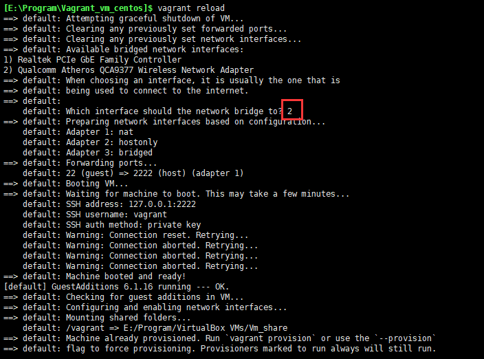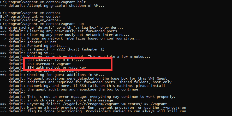 Vagrant的根目录(就是我们一开始创建的vagrant_vm)和虚拟机里的/vagrant目录是共享的。最开始启动时候日志如下: