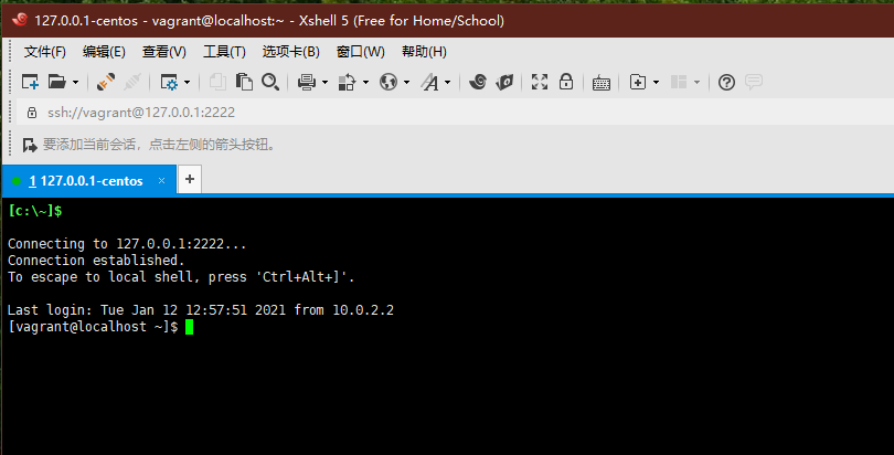 通过vagrant ssh 主机名就可以连接上它们了。然后我们参考章节 6.2 ,给两台虚拟机安装VBoxGuestAdditions。