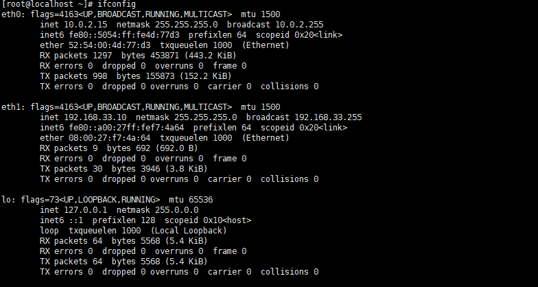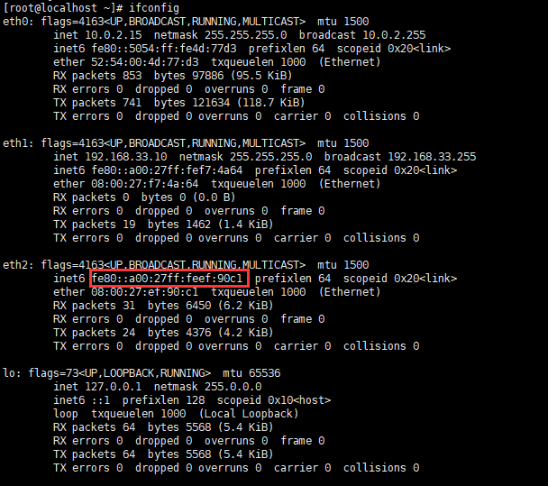 因为我的本地有线网和无线网全部连接,选择wifi所以选择第二个选项,重启好后连接虚拟机,查看其IP: