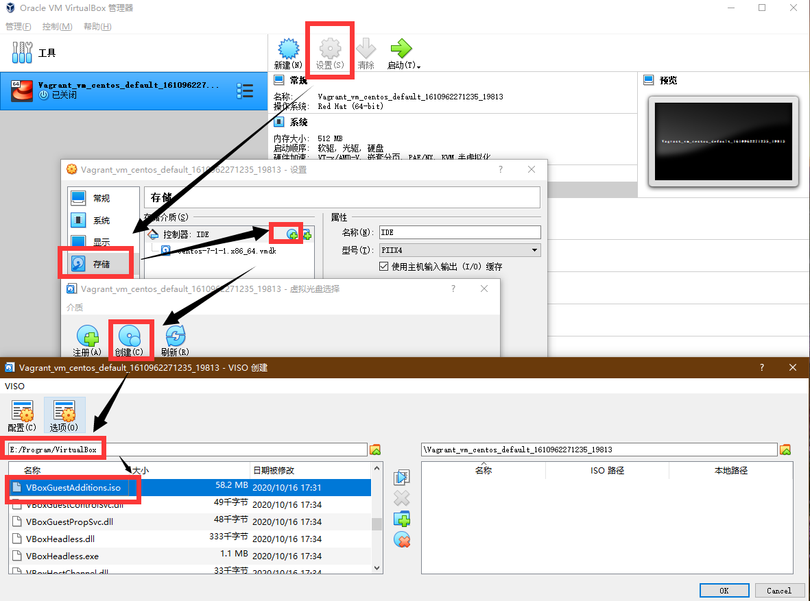 一般会提示无法分配错误,这个时候就需要我们手动挂载了。手动安装下,在VirtualBox安装目录下找到VBoxGuestAdditions.iso