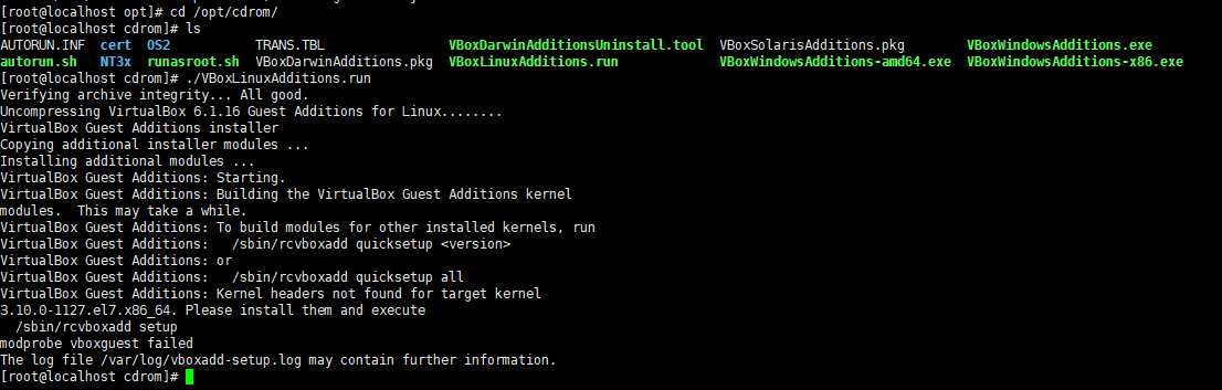 加载进来,之后重启下,使用以下命令安装VBoxGuestAdditions