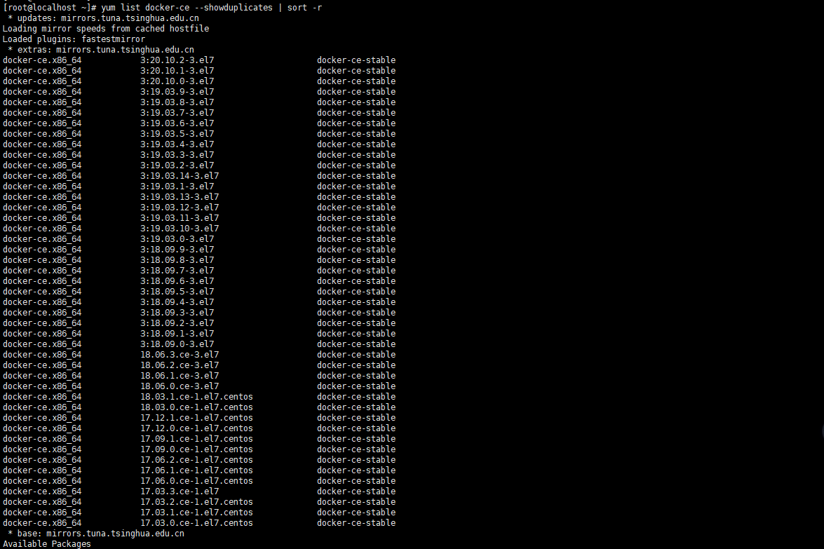 yum list docker-ce --showduplicates | sort -r
