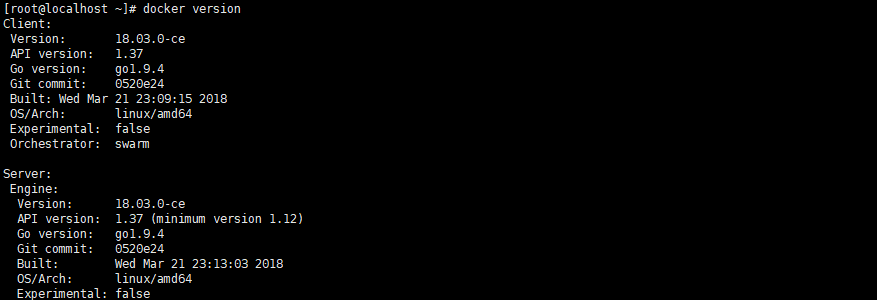 验证安装是否成功(有client和service两部分表示docker安装启动都成功了)