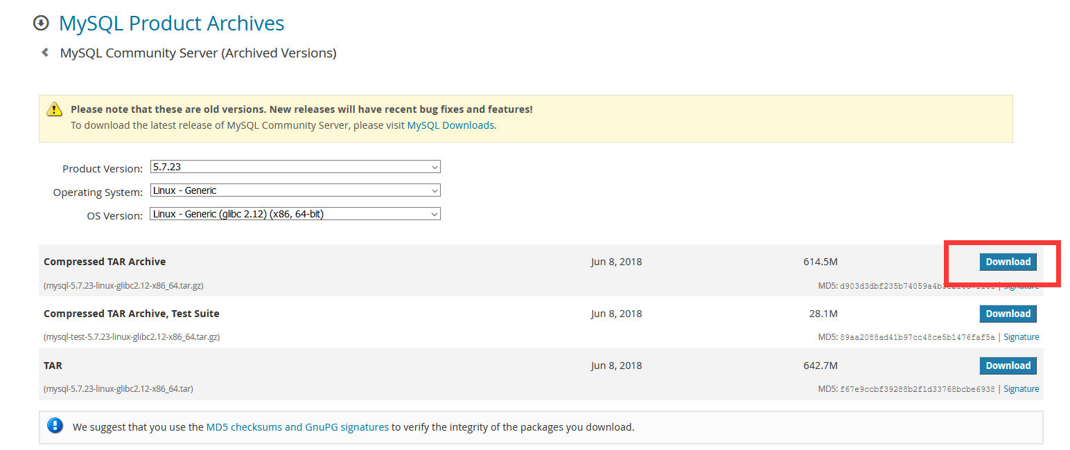 我这里下载mysql-5.7.23-linux-glibc2.12-x86_64.tar.gz版本
