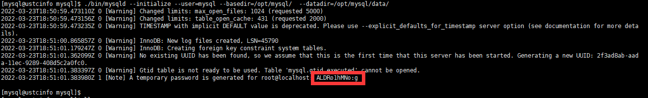 ./bin/mysqld --initialize --user=mysql --basedir=/opt/mysql/ --datadir=/opt/mysql/data/