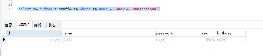 查询数据库后,发现实际数据并未插入,说明事务生效了。