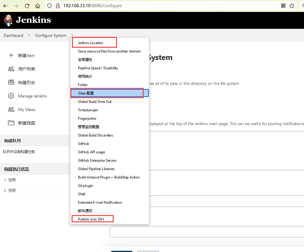 1. 安装gitee、Deploy to container、Publish Over SSH