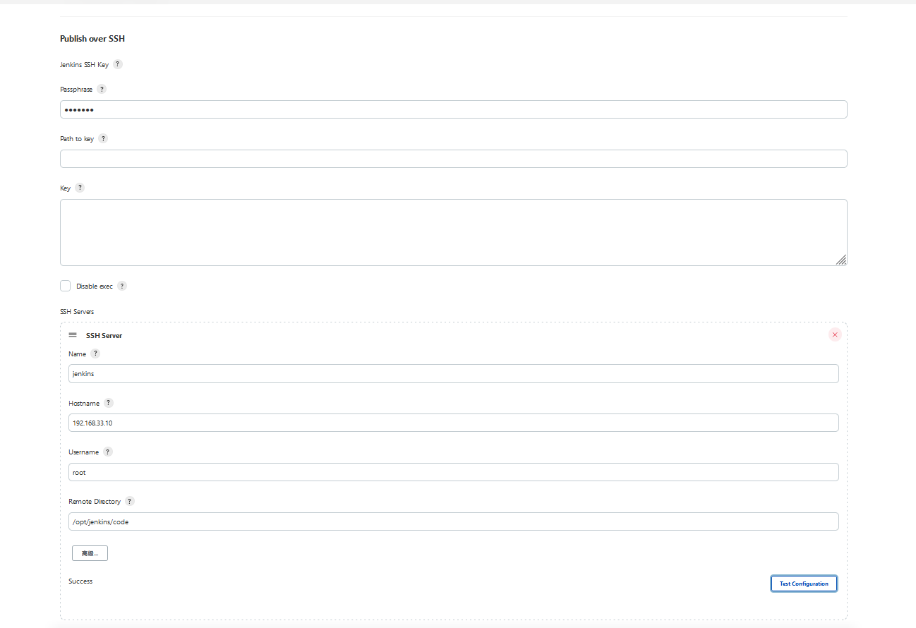 即我们代码最终运行的服务器地址信息,就像我们之前手动部署时使用xshell登录Linux服务器一样,当然这里是可以配置多台远程Linux服务器的,配置完成后点击保存即可,为后面我们配置自动化部署做准备。