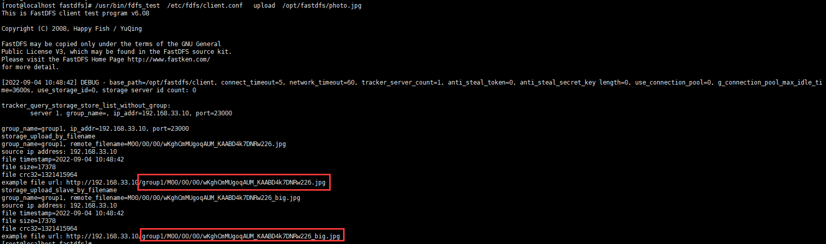/usr/bin/fdfs_test /etc/fdfs/client.conf upload /opt/fastdfs/photo.jpg