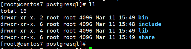 安装完成后,进入/opt/postgresql目录可以看到安装后的postgresql的文件如下: